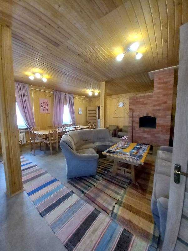 В общем зале:- кухня (плита, микроволновая печь, чайник, посуда).- столовая- холодильник, морозильная камера,- телевизор, диваны.